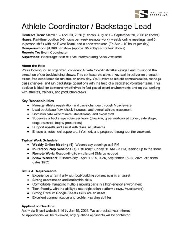 Join the team behind some of Canada’s most exciting fitness and bodybuilding events! Volunteering at our shows is a fun and rewarding way to get involved in the community, build experience, and be part of an inspiring, high-energy environment.